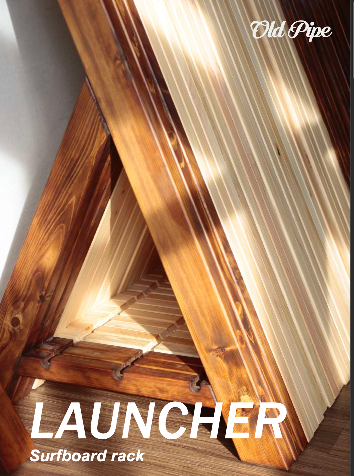 I'm always delighted to introduce the Old Pipe vertical surfboard rack with the name Launcher to others because the name is not only apt but also vivid. Moreover, I like to mention that I came up with this name in my dreams, highlighting the pressure I was under!