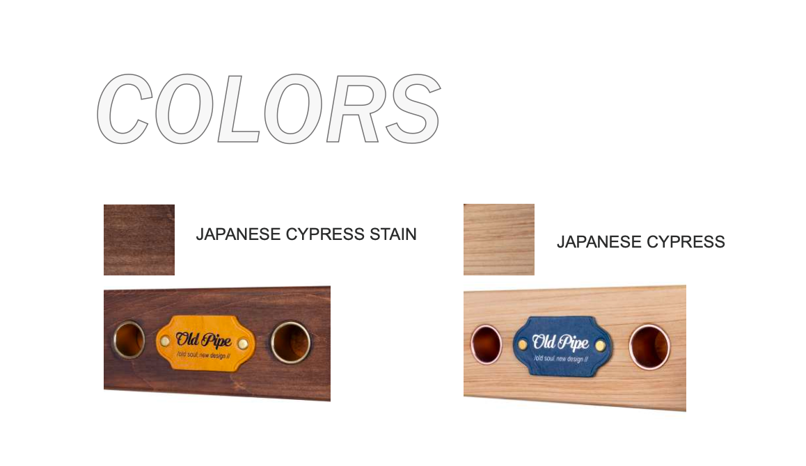 Material: Japanese Hinoki wood, chosen for its distinctive fragrance, durability with moisture, and resistance against mold and insects. Two stain options available.