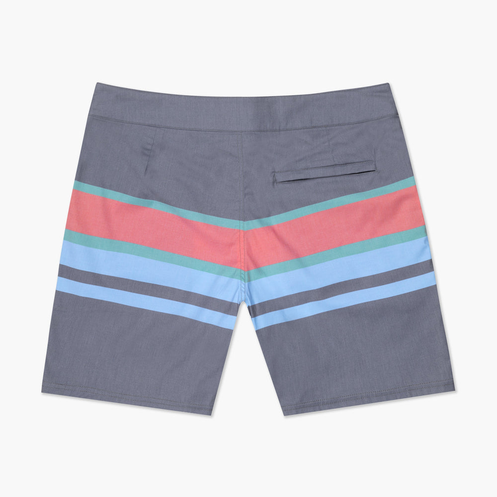Classic stripes that make you feel Irie on our popular 6" inseam, featuring two side hand pockets and Vast block logo on the left knee. Available in Grey and Navy.