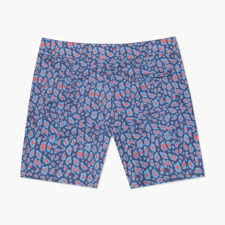 Bold leopard print pattern on our popular 6" inseam, featuring two side hand pockets and Vast block logo on the left knee. Available in Purple and Aqua Leopard.