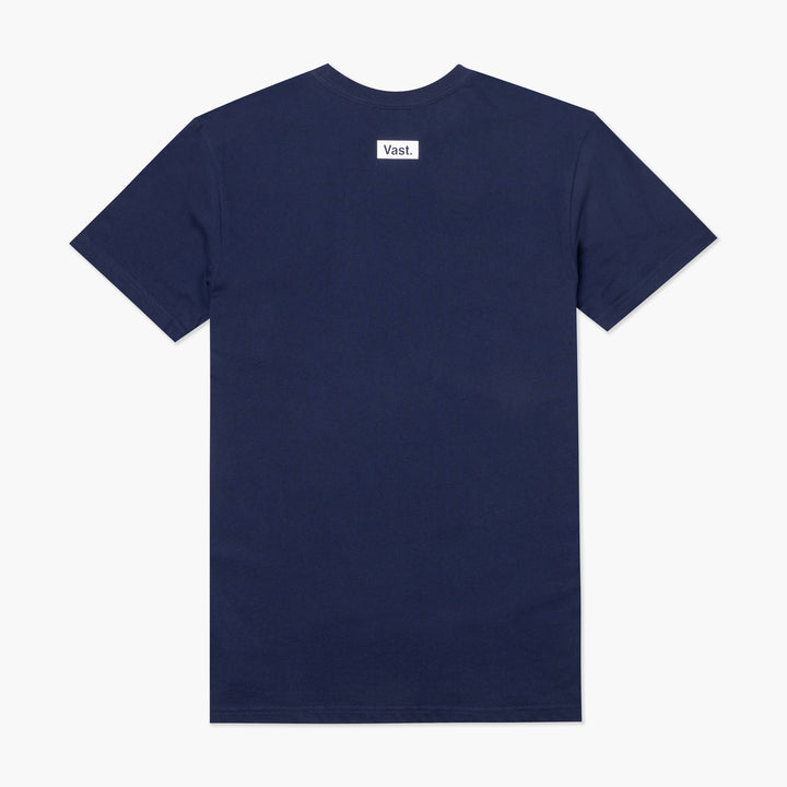 Fruits Tee. Our premium fit tee with Vast surrounded by tropical fruits on front and Vast logo on the back. Crafted from 100% ring spun combed Cotton with side seams and a ribbed collar. Available in Navy and Cream.