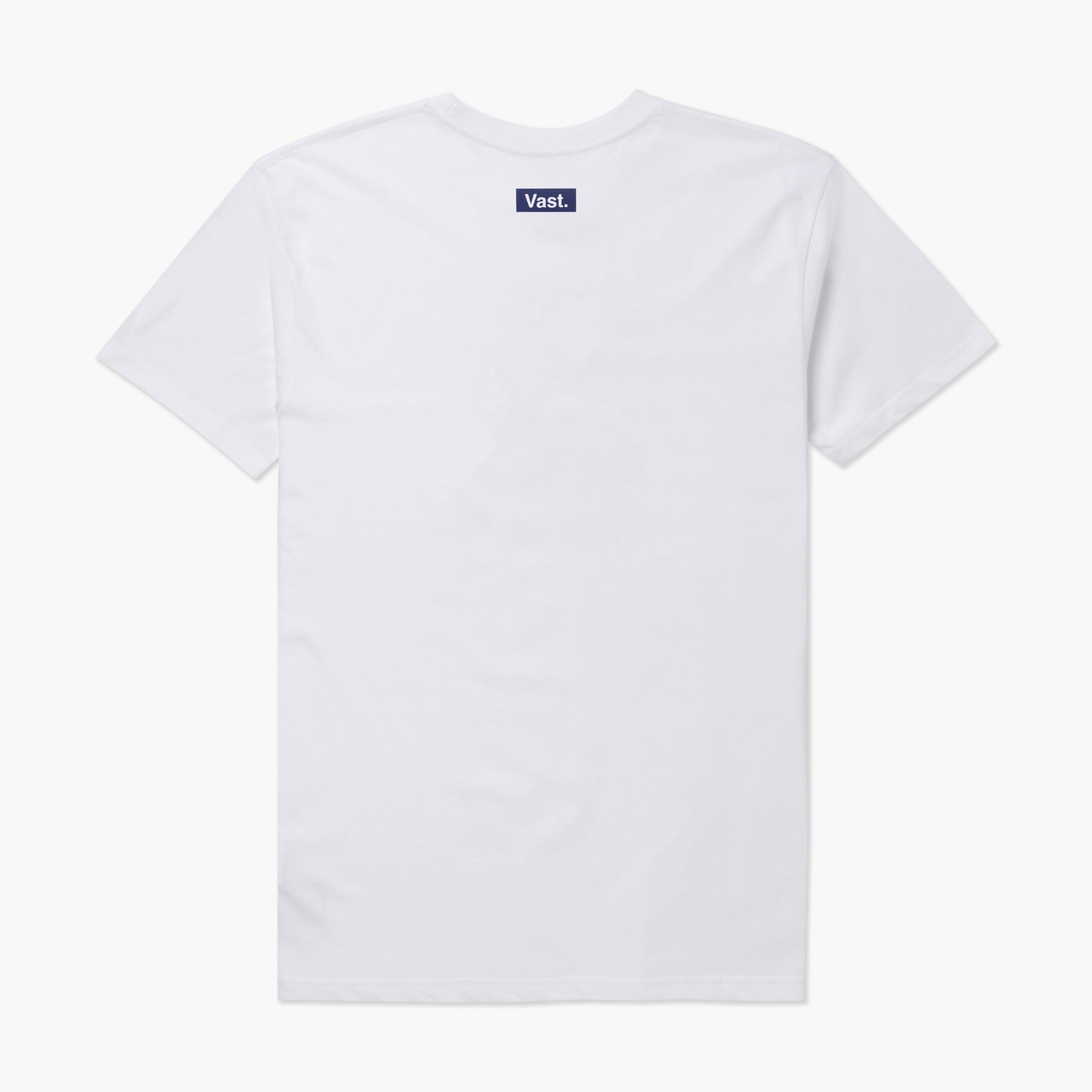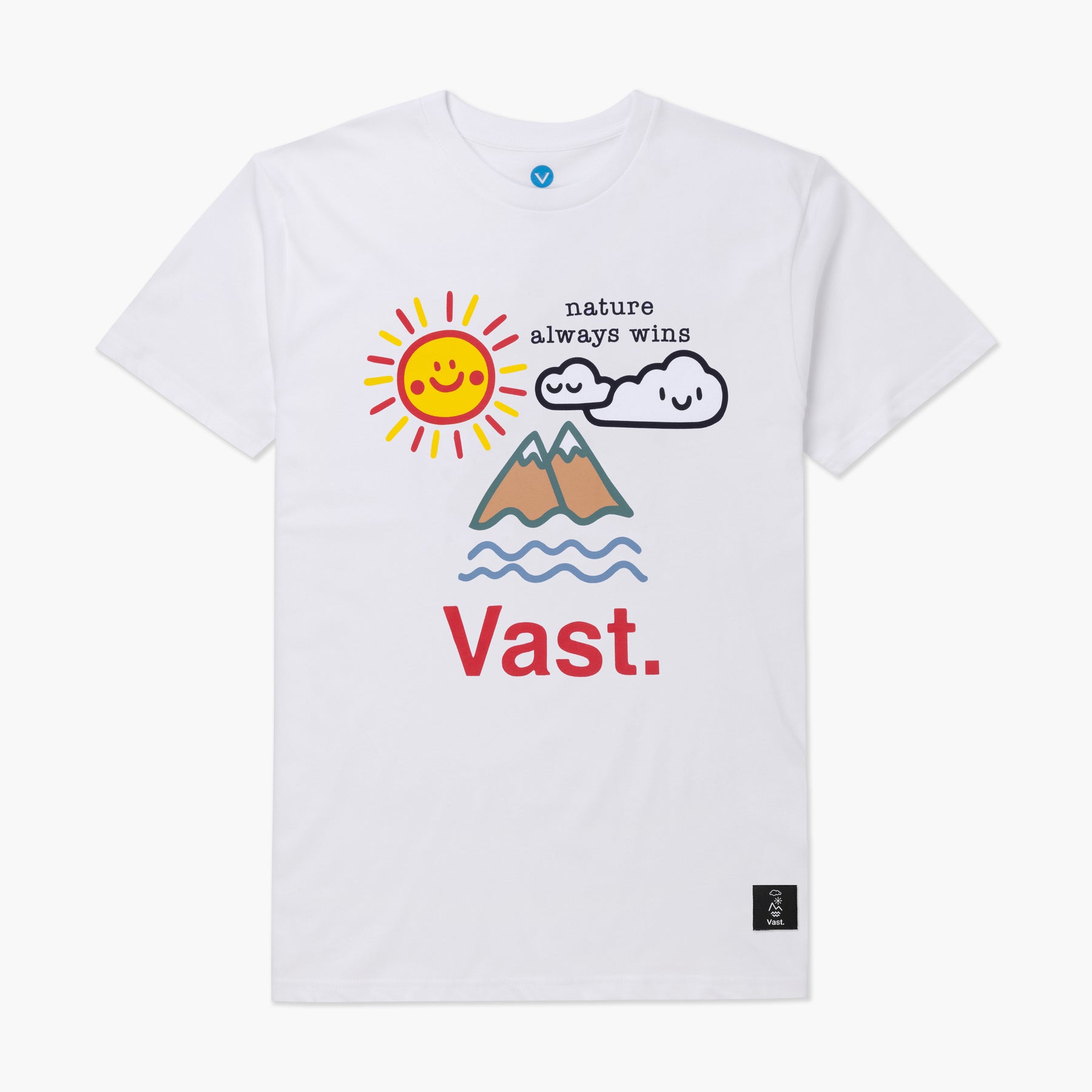 VAST Natures Paint Tee. Our premium fit tee with playfully drawn elements on the chest and vast logo the back. Crafted from 100% ring spun combed Cotton with side seams and a ribbed collar. Available in white and black.