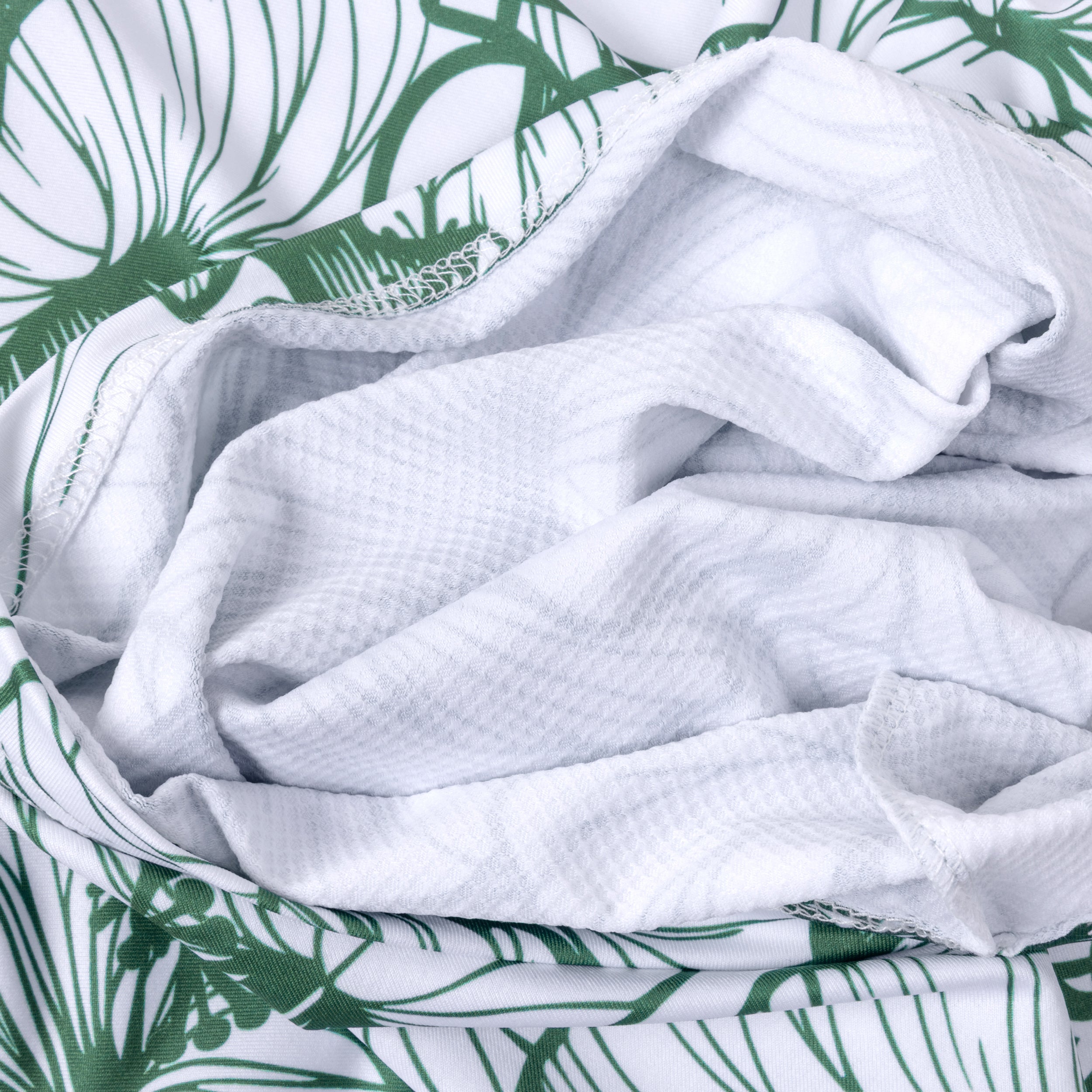 The cling-free everywhere fabric born of recycled plastic features UV-blocking, anti-microbial, moisture-wicking and quick-dry properties.