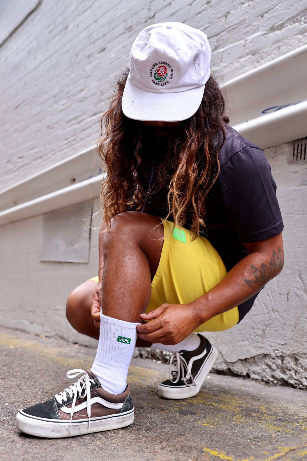 Minimalism design, small Rose graphic with Nature Always Wins slogan wrapped around in a circle on our 5 panel Dad Hat. Vast circle logo over back arch. Seamed front panel without buckram. 6 sewn eyelets. 6 rows stitching on visor. Matching fabric under visor. White Sweatband. Matching Fabric Strap with Adjustable Metal Buckle. 100% Cotton. Available in White.