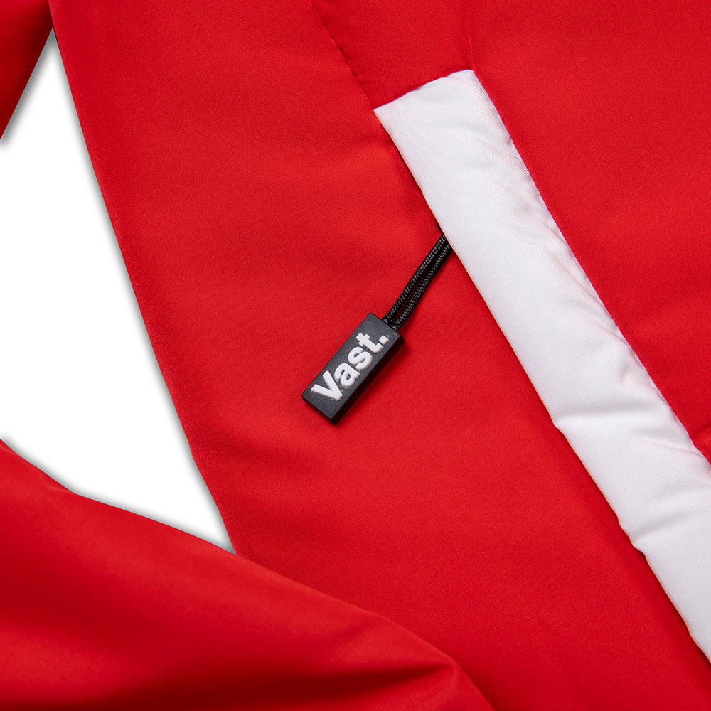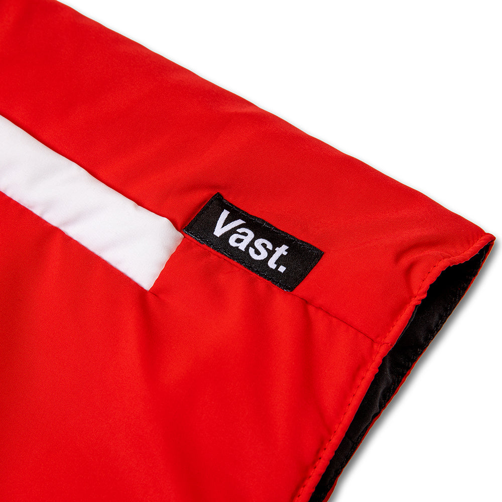 Versatile, sleek and perfect for wearing out at night or layering up during the colder months. Designed with a classic bomber jacket silhouette that includes a full button up closure, two front hand pockets, Branded Natural Elements on inside wrists and stylish Vast circle logo on left chest. Water and wind resistant, 100% Polyester, available in Charcoal and Red.